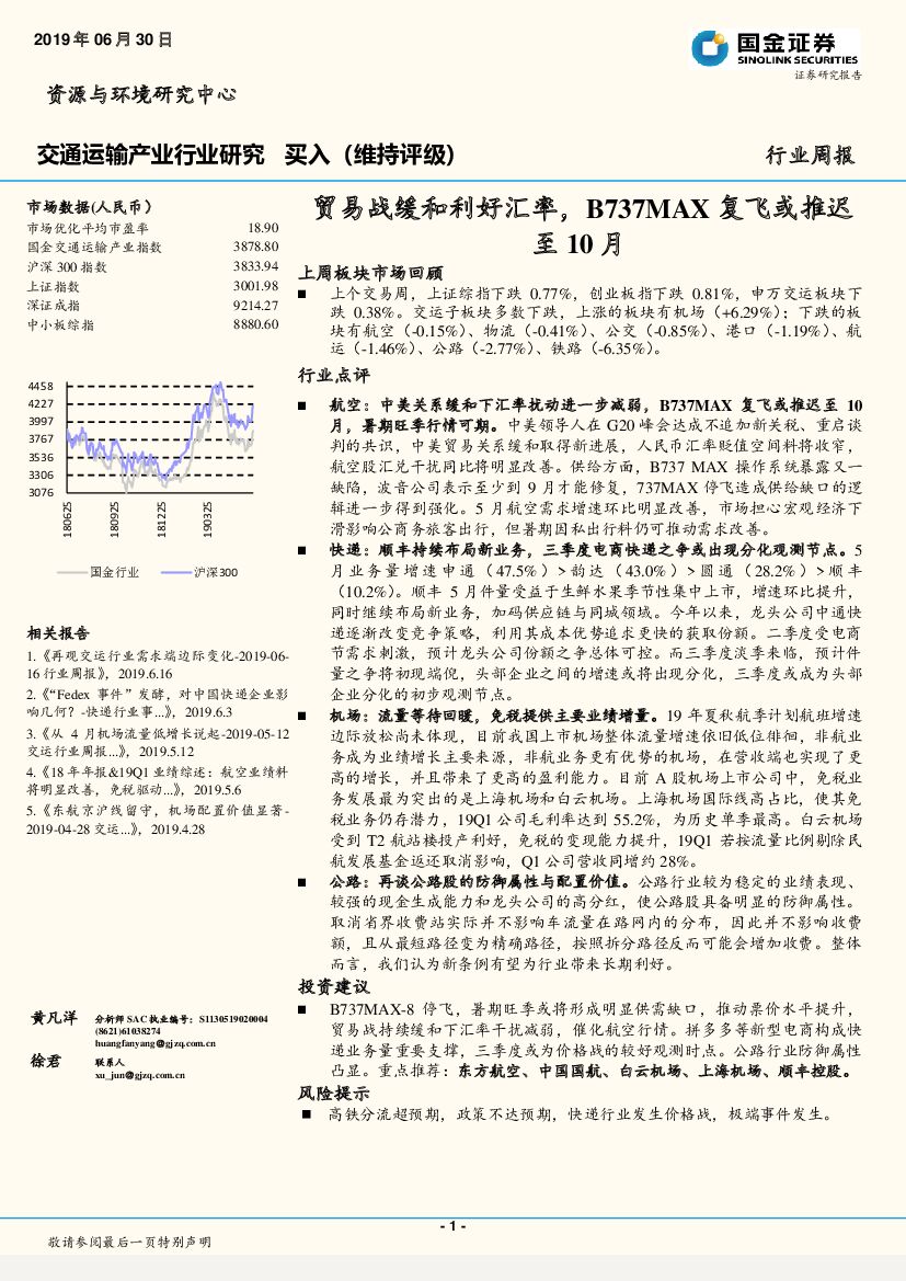 国金证券:交通运输行业周报:贸易战缓和利好汇率,B737MAX复飞或推迟至10月.pdf