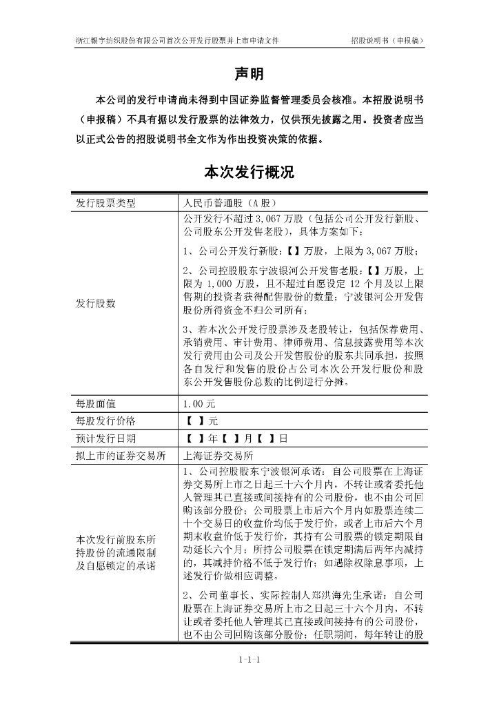 浙江银宇纺织股份有限公司上交所主板IPO上市招股说明书.pdf