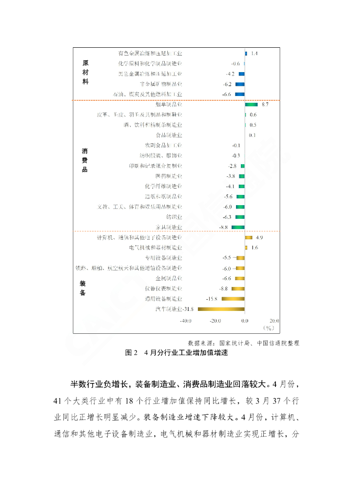 中国信通院:2022年4月工业运行数据报告(生产):工业生产受疫情冲击回落较快.pdf