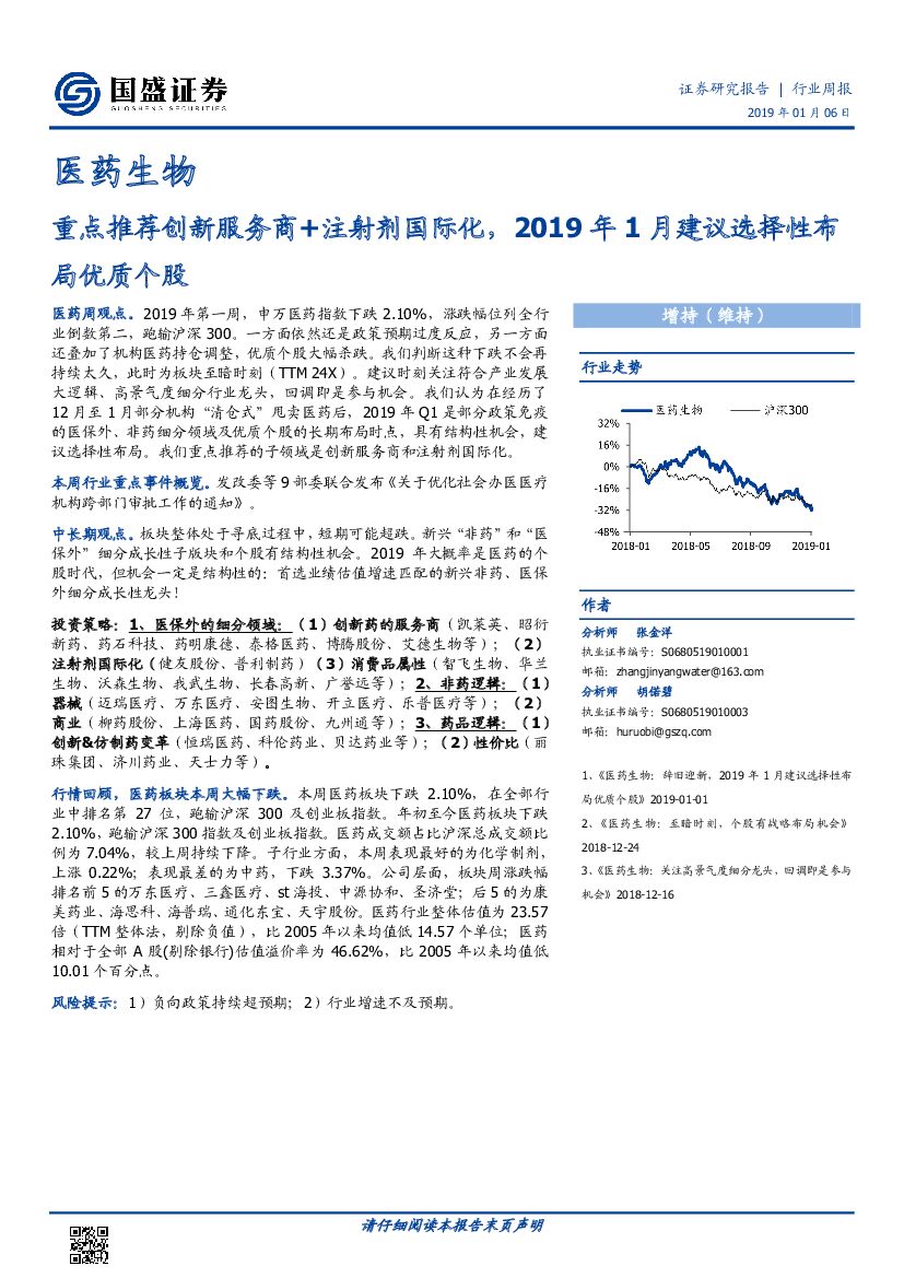国盛证券:医药生物行业周报:重点推荐创新服务商+注射剂国际化,2019年1月建议选择性布局优质个股.pdf