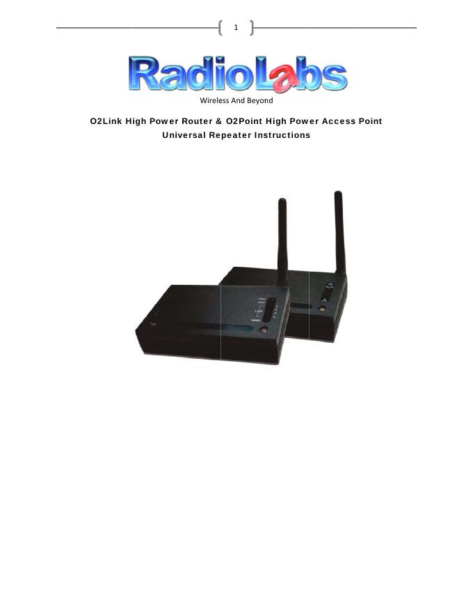 RadioLabs O2Link High Power Router & O2Point High Power Access Point Universal Repeater 使用手册.pdf