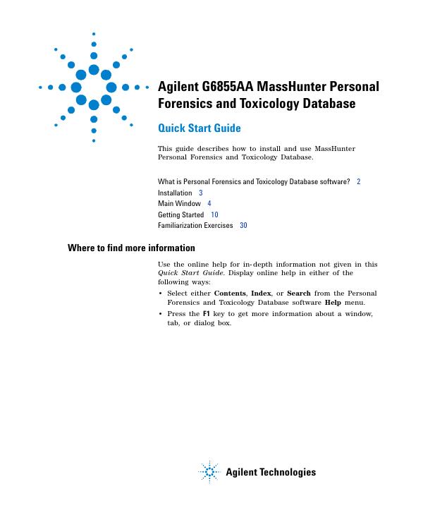 Agilent G6855AA MassHunter Personal Forensics and Toxicology Database Quick Start Guide.pdf