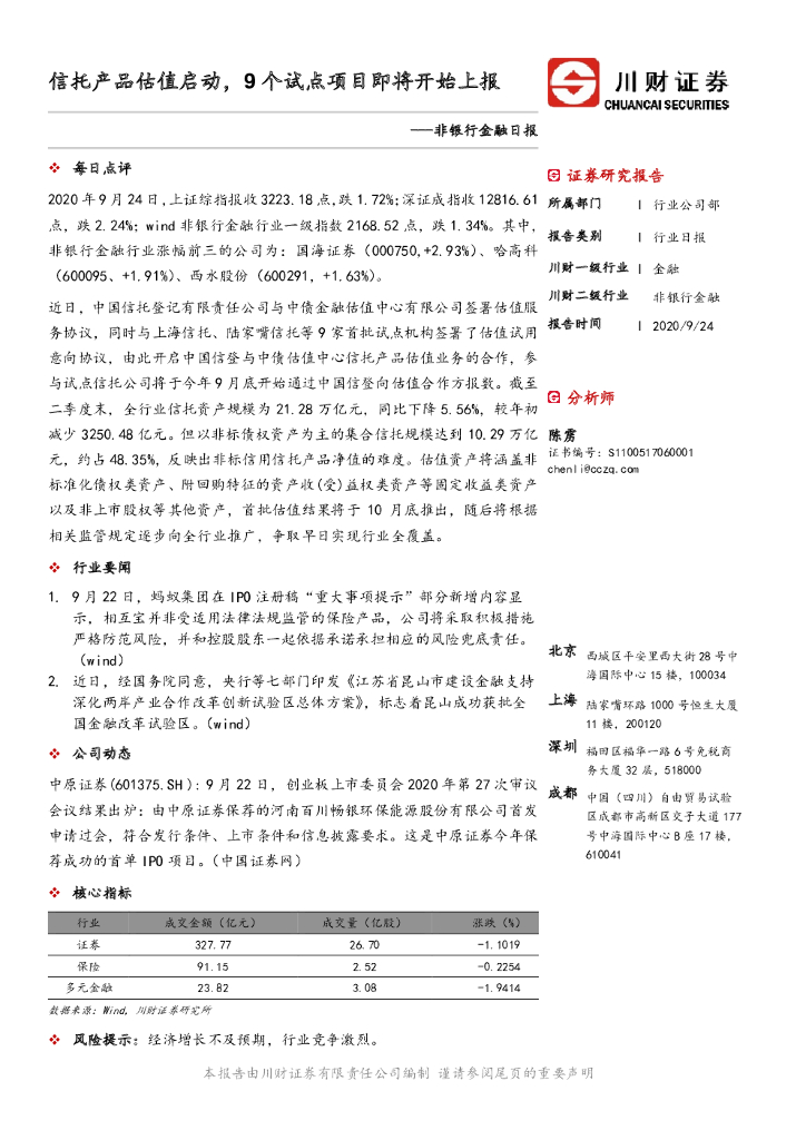 川财证券:非银行金融日报:信托产品估值启动,9个试点项目即将开始上报.pdf