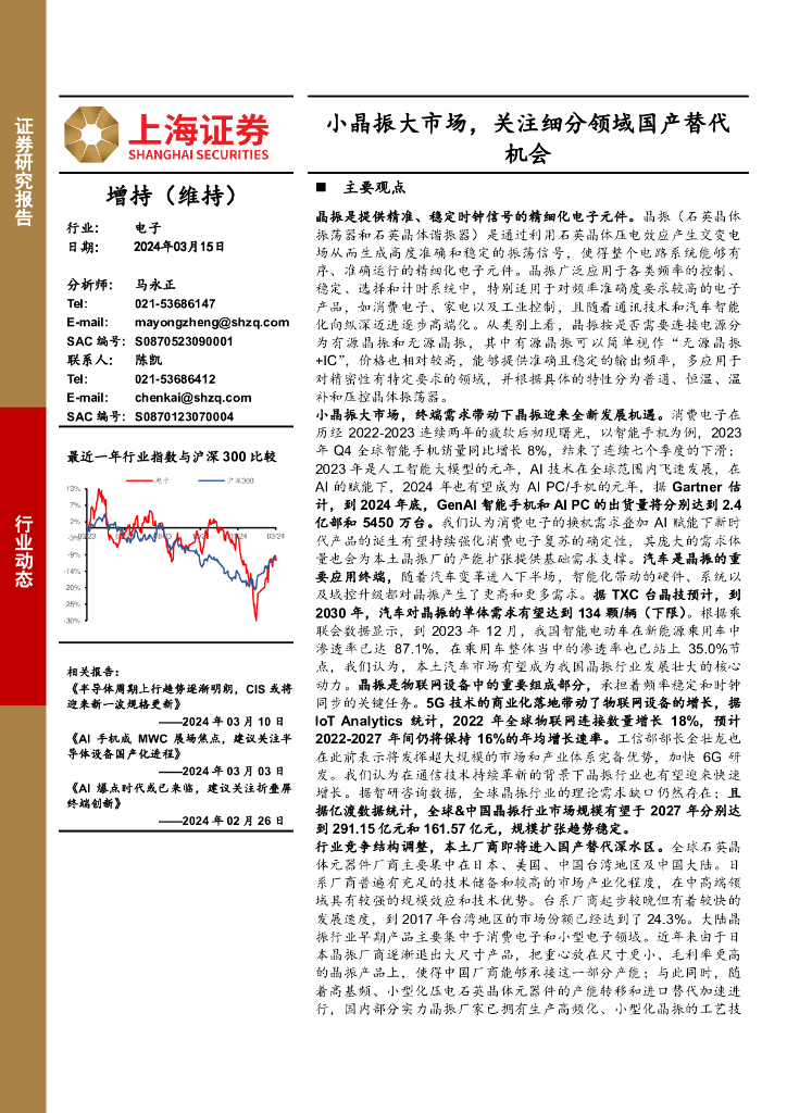 上海证券:电子行业动态:小晶振大市场,关注细分领域国产替代机会.pdf