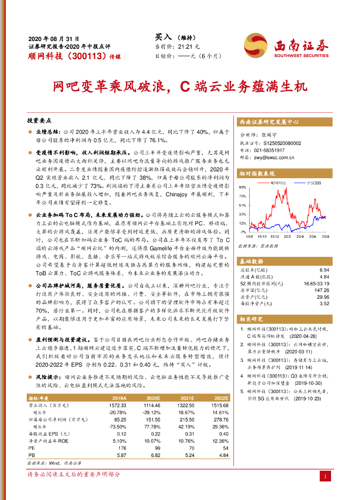 西南证券:顺网科技(300113)-网吧变革乘风破浪,C端云业务蕴满生机.pdf
