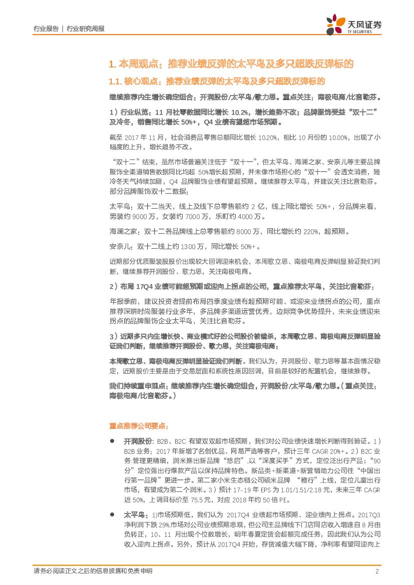 天风证券:纺织服装行业研究周报:受益冷冬及“双十二”初步验证,品牌服饰全渠道销售持续加速Q4业绩可期.pdf