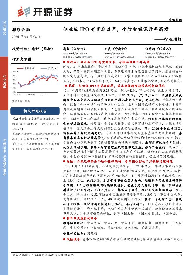 开源证券:非银金融行业周报:创业板IPO有望迎改革,个险和银保开年高增.pdf