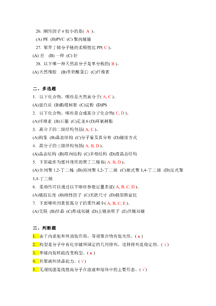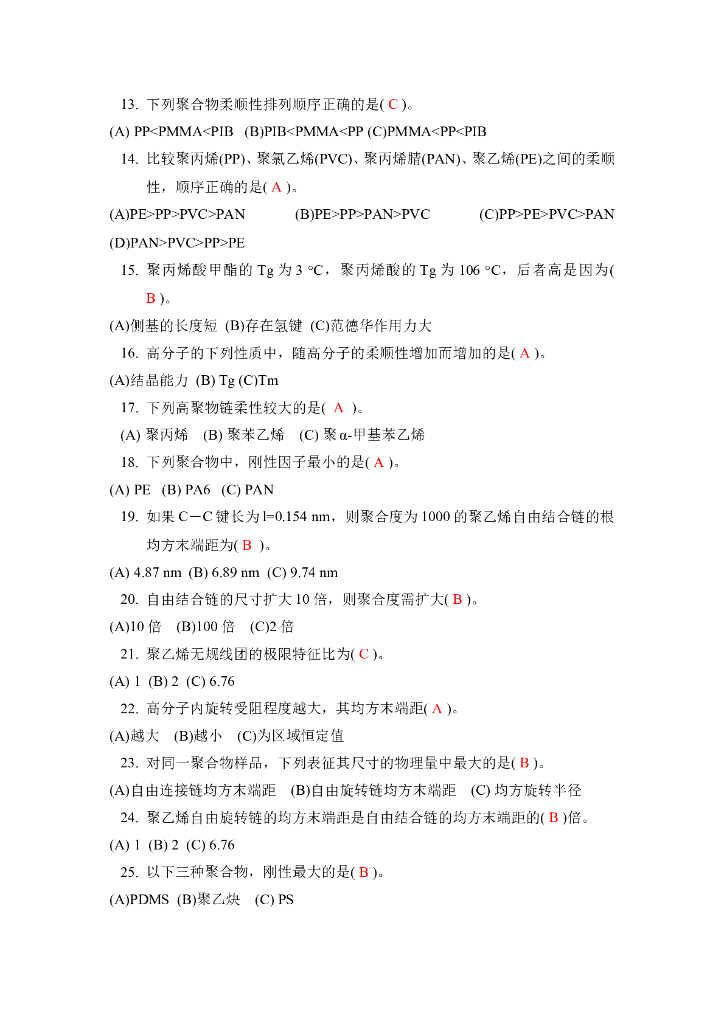 《高分子物理》章节习题库及答案.pdf