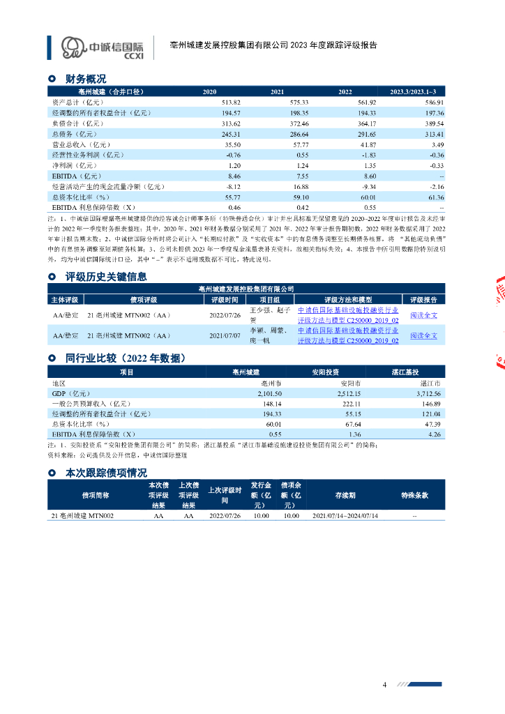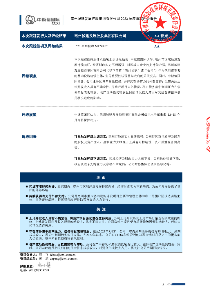 中诚信:亳州城建发展控股集团有限公司2023年度跟踪评级报告.pdf