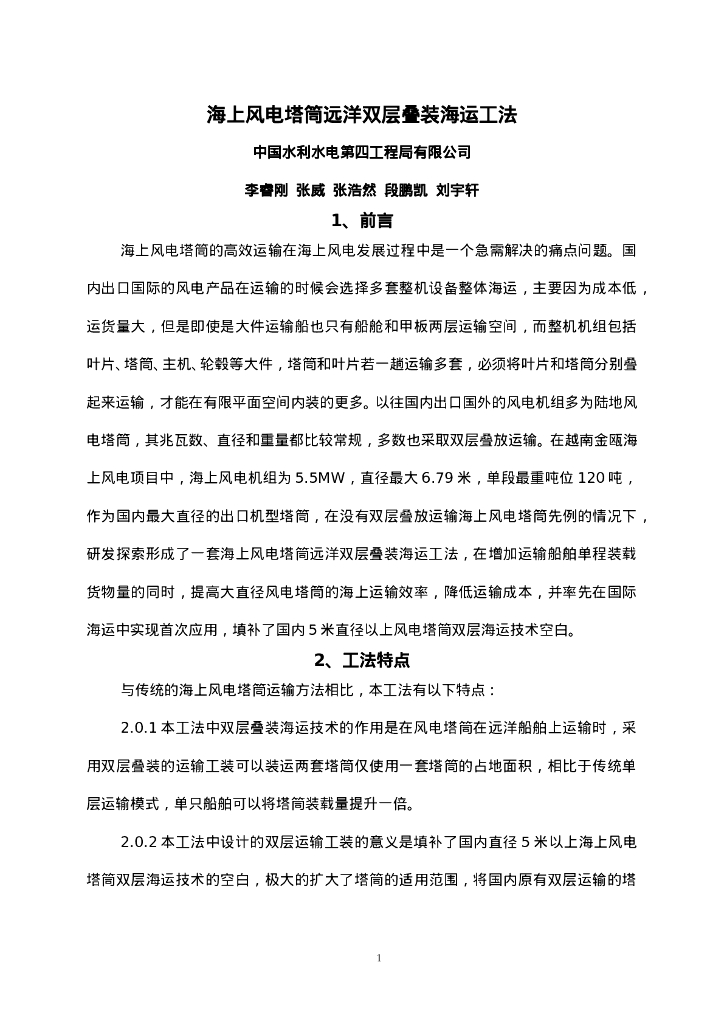 QHGF-2022148 海上风电塔筒远洋双层叠装海运工法.doc