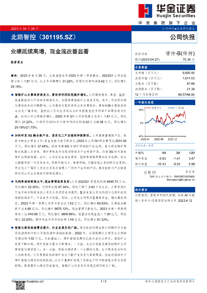 华金证券:北路智控(301195)-业绩延续高增,现金流改善显著.pdf