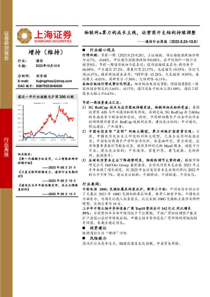 上海证券:通信行业周报:物联网+算力构成长主线,运营商开支结构持续调整.pdf