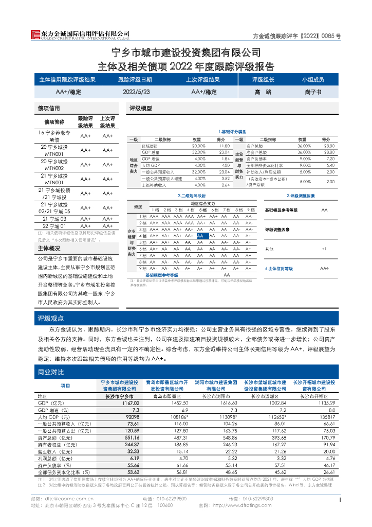 东方金诚:宁乡市城市建设投资集团有限公司主体及相关债项2022年度跟踪评级报告.pdf