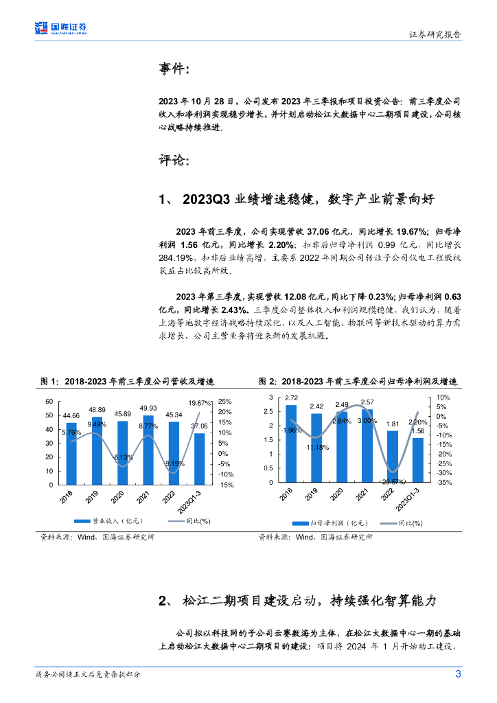 国海证券:云赛智联(600602)-2023年三季报点评报告:Q3业绩增速稳健,智算中心规划前景广阔.pdf