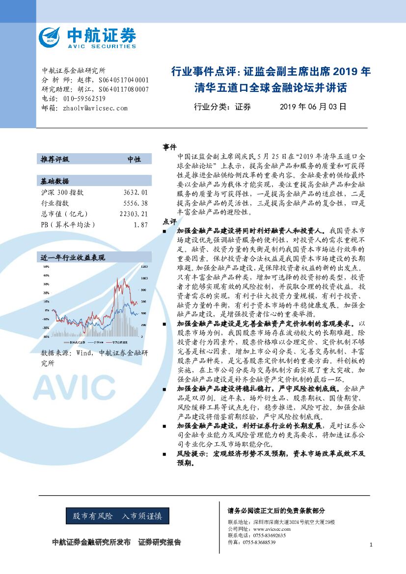 中航证券:证券行业事件点评:证监会副主席出席2019年清华五道口全球金融论坛并讲话.pdf
