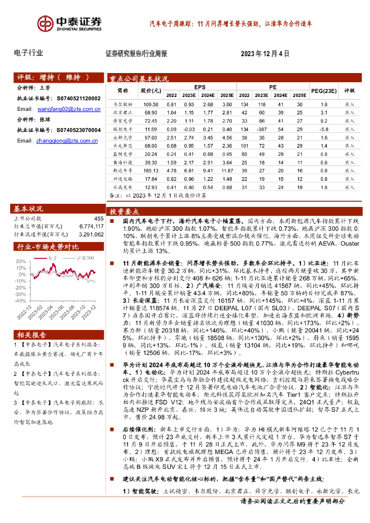 中泰证券:汽车电子周跟踪:11月问界增长势头强劲,江淮华为合作造车.pdf