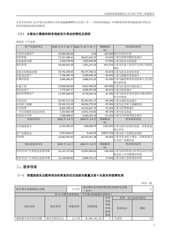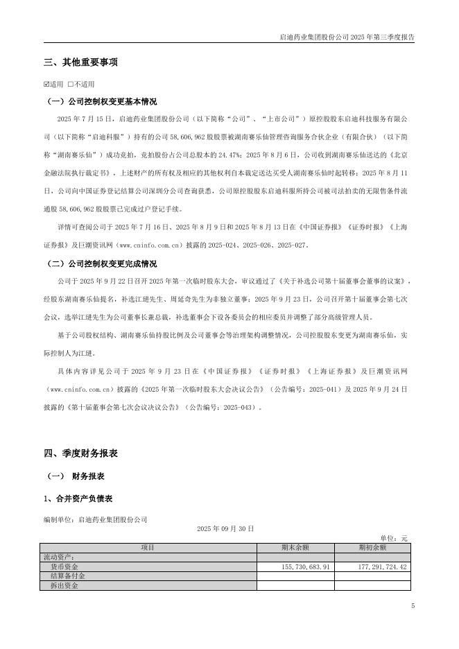 000590-启迪药业:2025年三季度报告.pdf