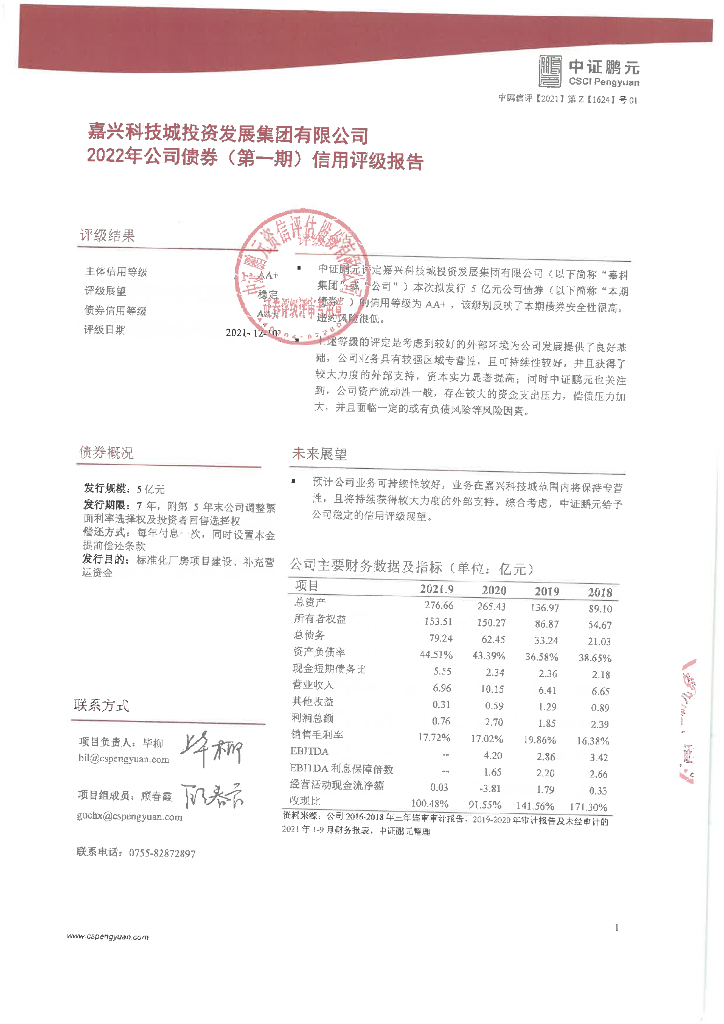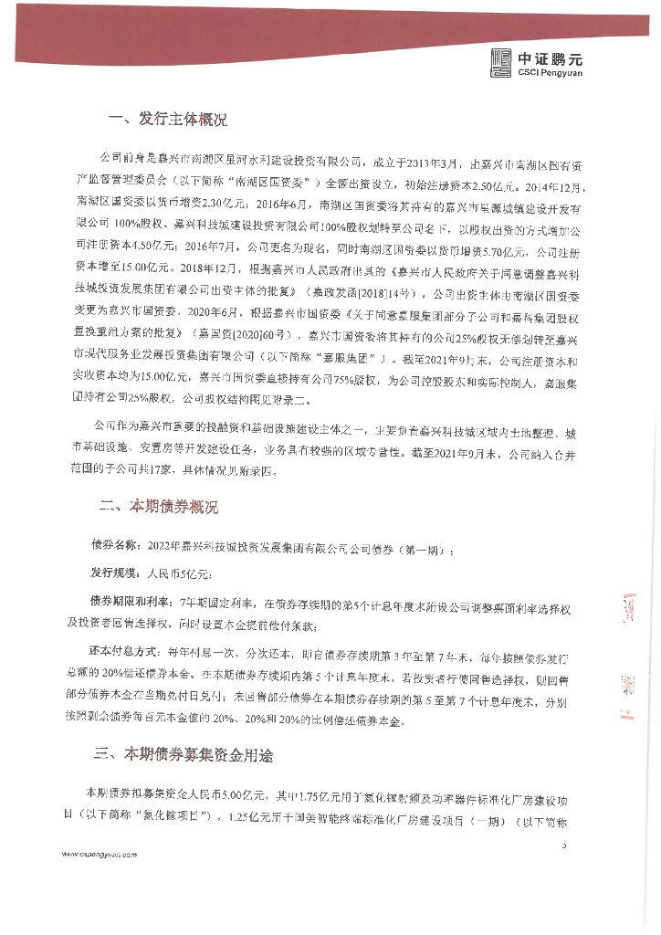 鹏元:嘉兴科技城投资发展集团有限公司2022年公司债券(第一期)信用评级报告.pdf