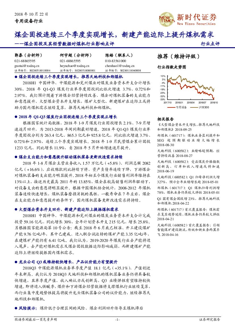 新时代证券:煤企固投及其经营数据对煤机行业影响点评:煤企固投连续三个季度实现增长,新建产能边际上提升煤机需求.pdf