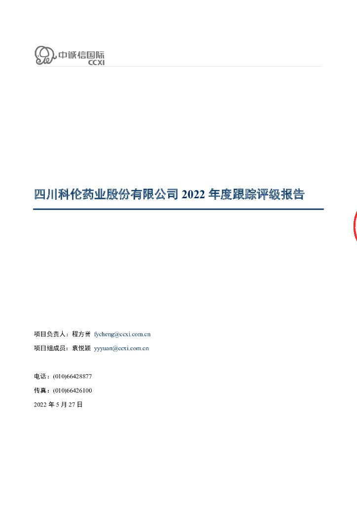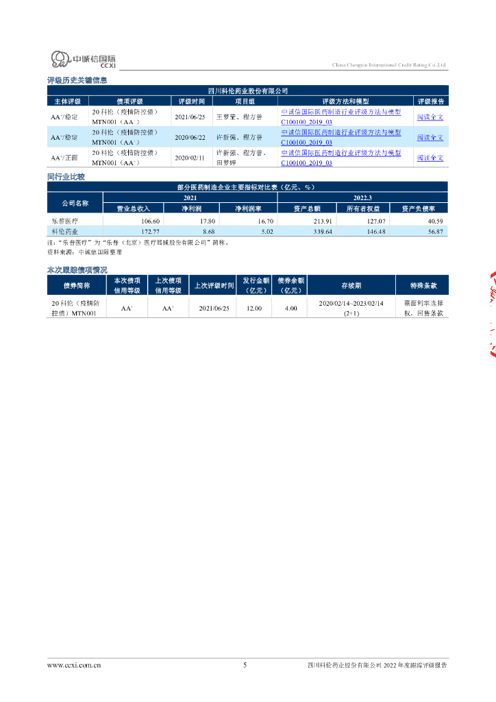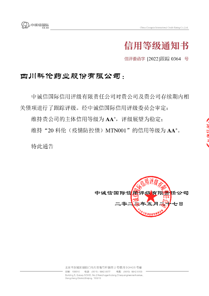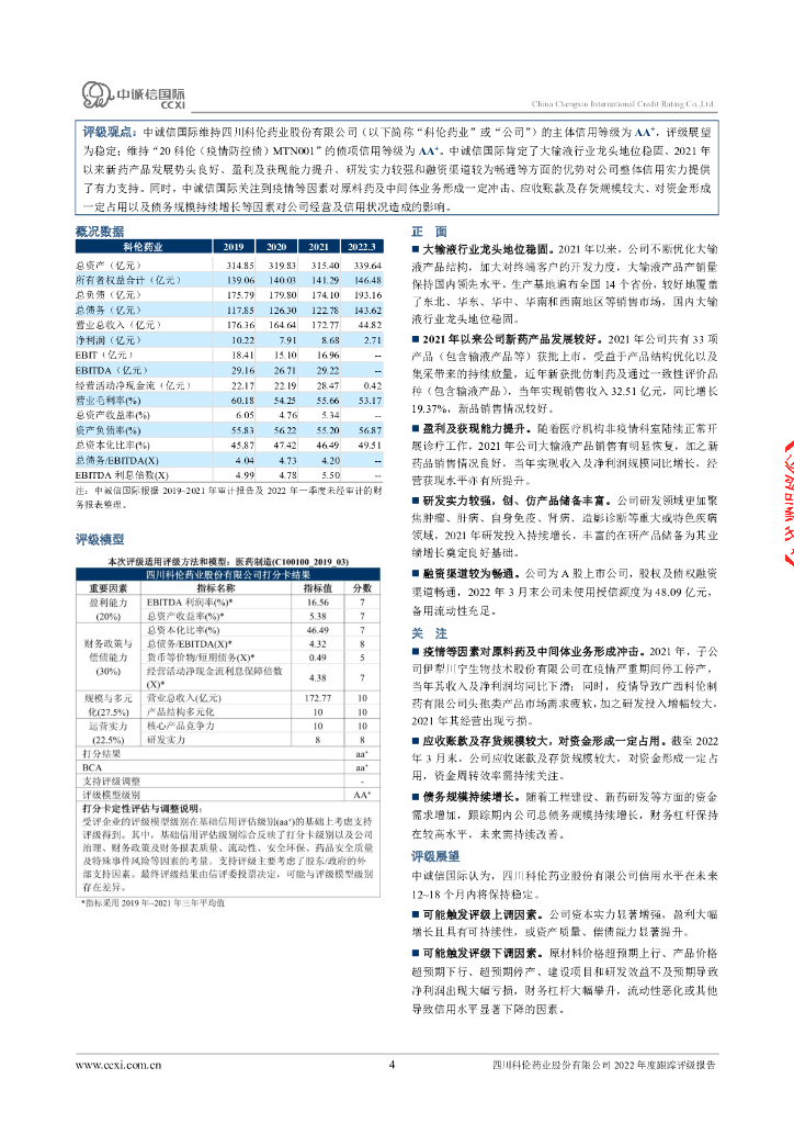 中诚信:四川科伦药业股份有限公司2022年度跟踪评级报告.pdf