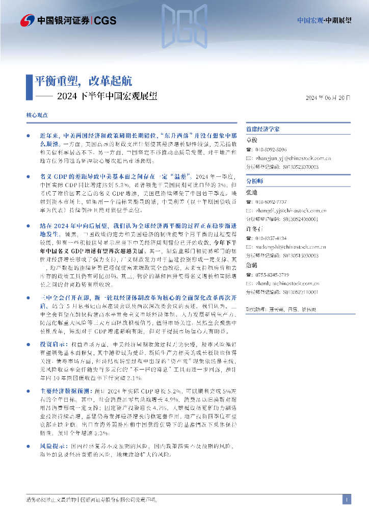中国银河证券:2024下半年中国宏观展望:平衡重塑,改革起航.pdf