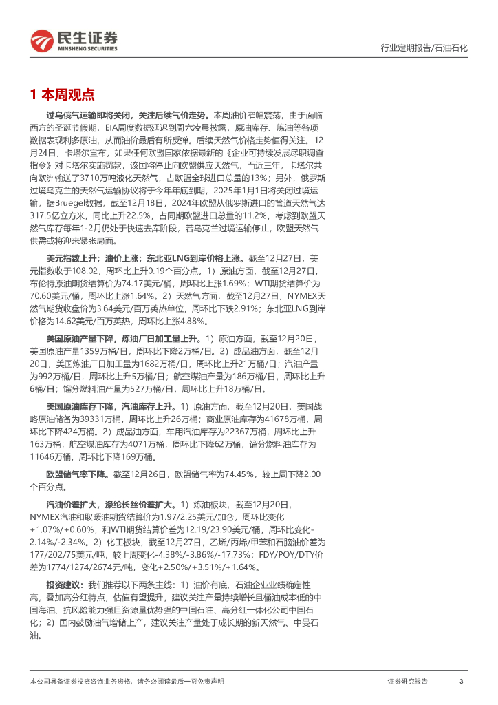民生证券:石化周报:过乌俄气运输即将关闭,关注后续气价走势.pdf