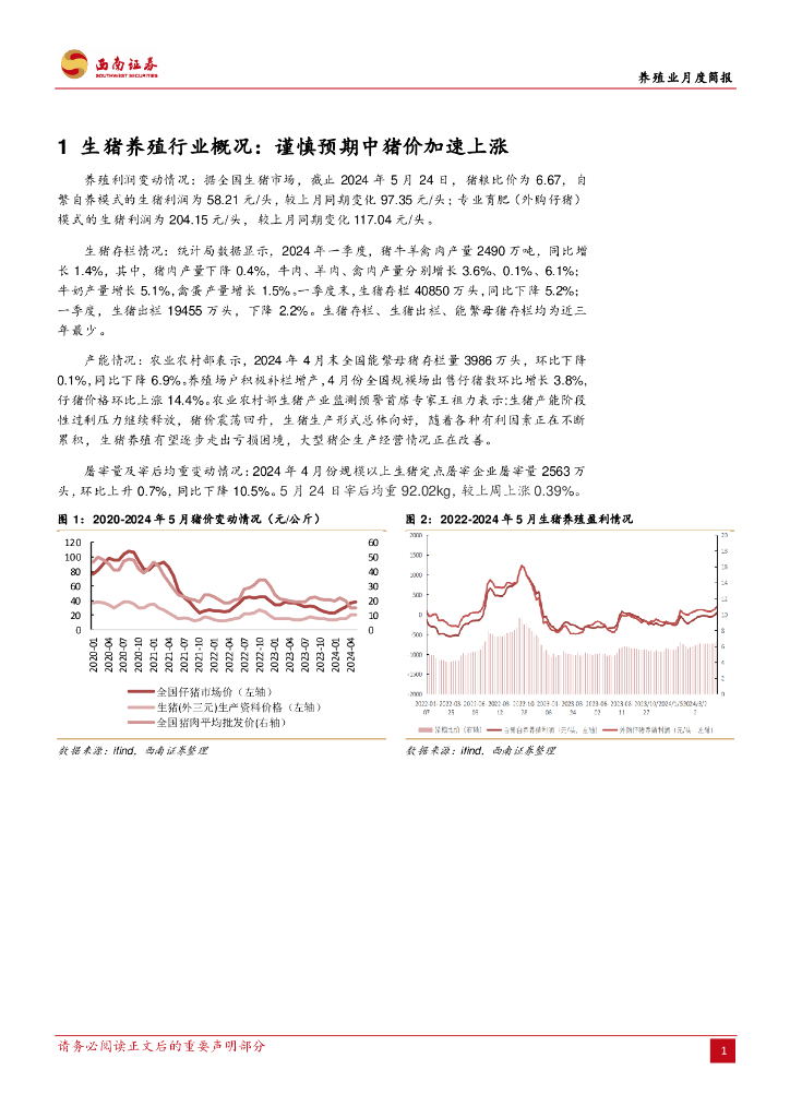 西南证券:养殖业月度简报:产能延续去化,猪价加速上涨.pdf