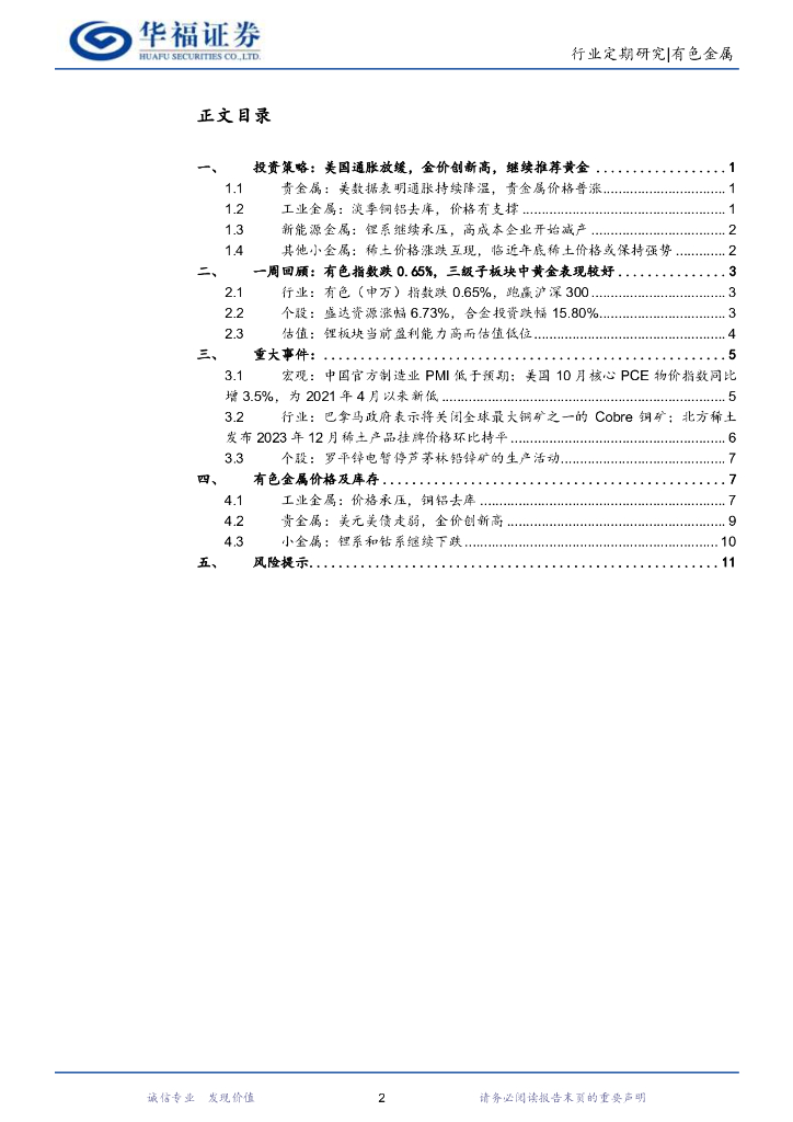 华福证券:有色金属行业周报:美国通胀放缓,金价创新高,继续推荐黄金.pdf