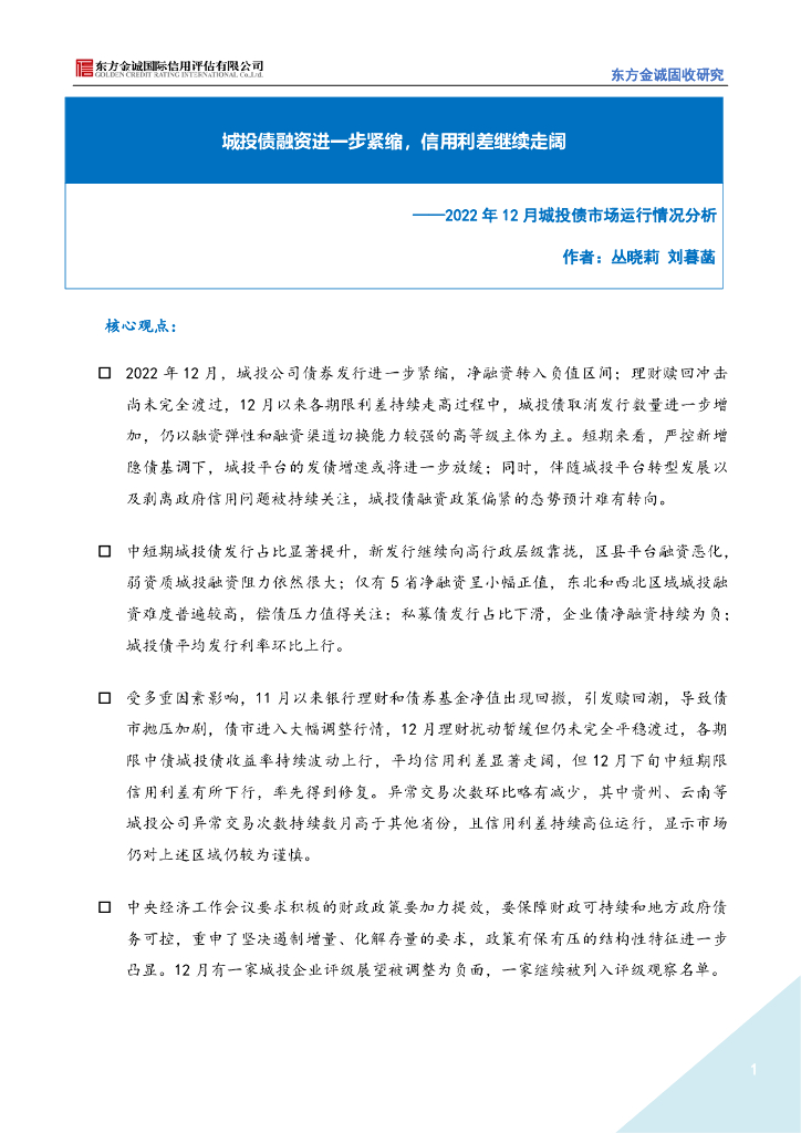 东方金诚:2022年12月城投债市场运行情况分析报告.pdf