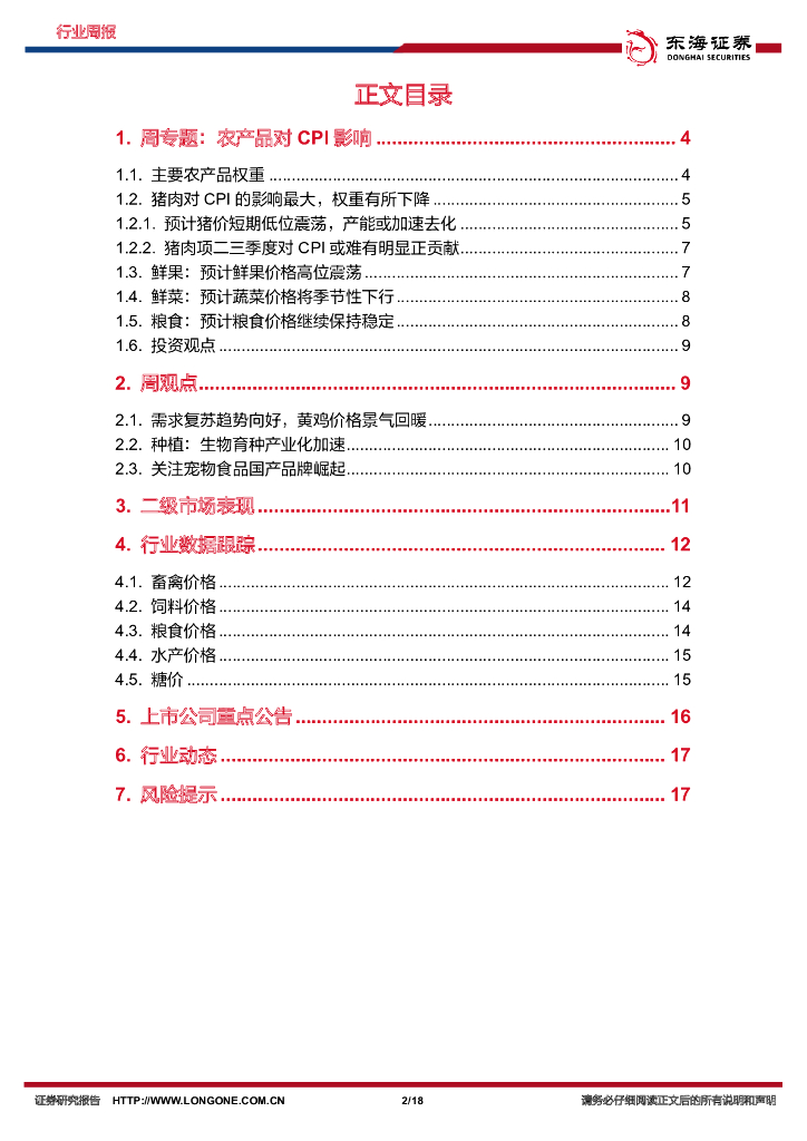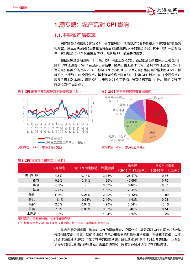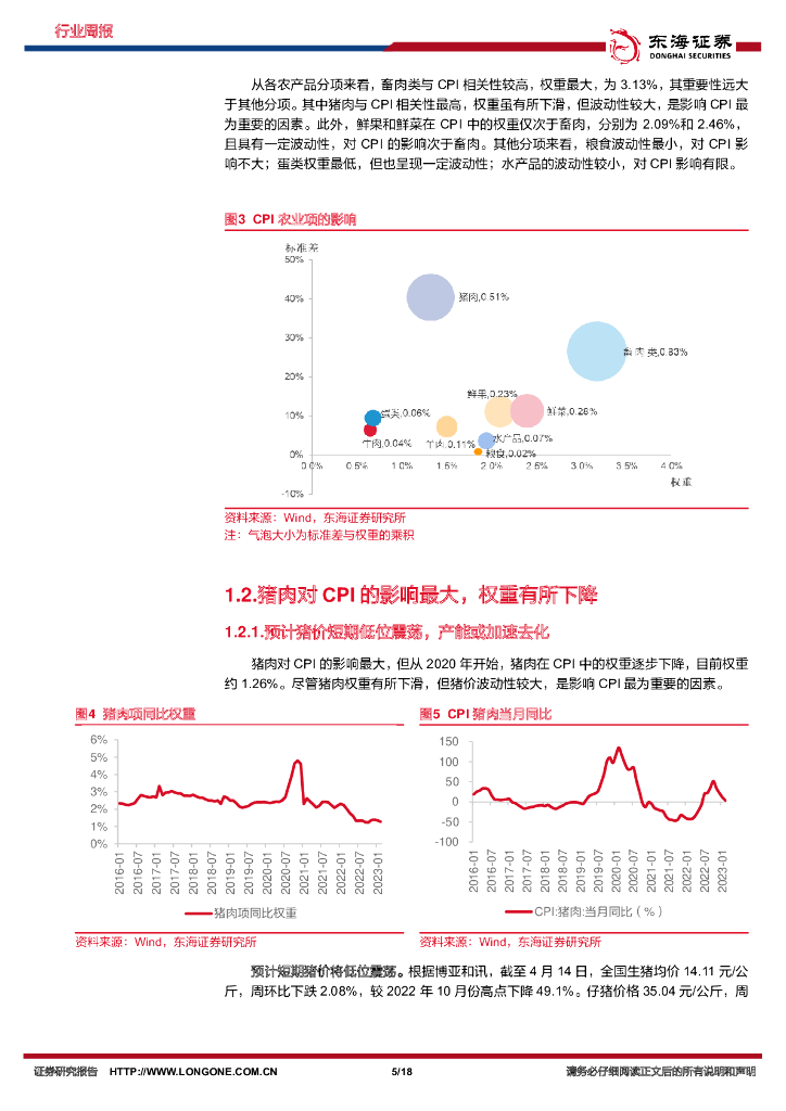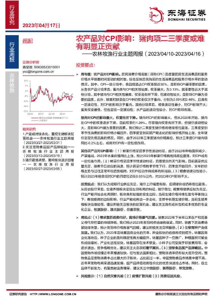 东海证券:农林牧渔行业主题周报:农产品对CPI影响:猪肉项二三季度或难有明显正贡献.pdf