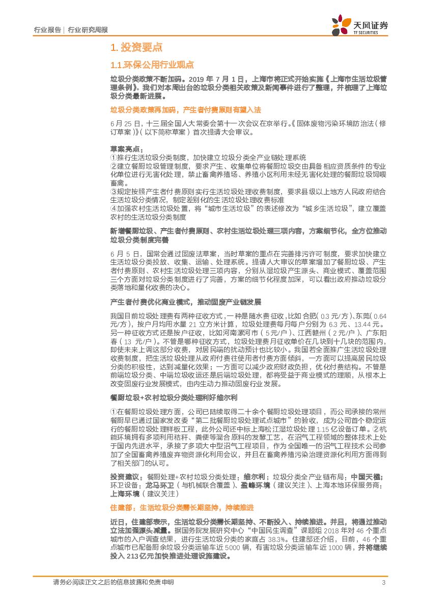 天风证券:公用事业行业研究周报:垃圾分类政策再加码,产生者付费原则有望入法;上海垃圾分类正式实施在即,最新工作进展梳理.pdf