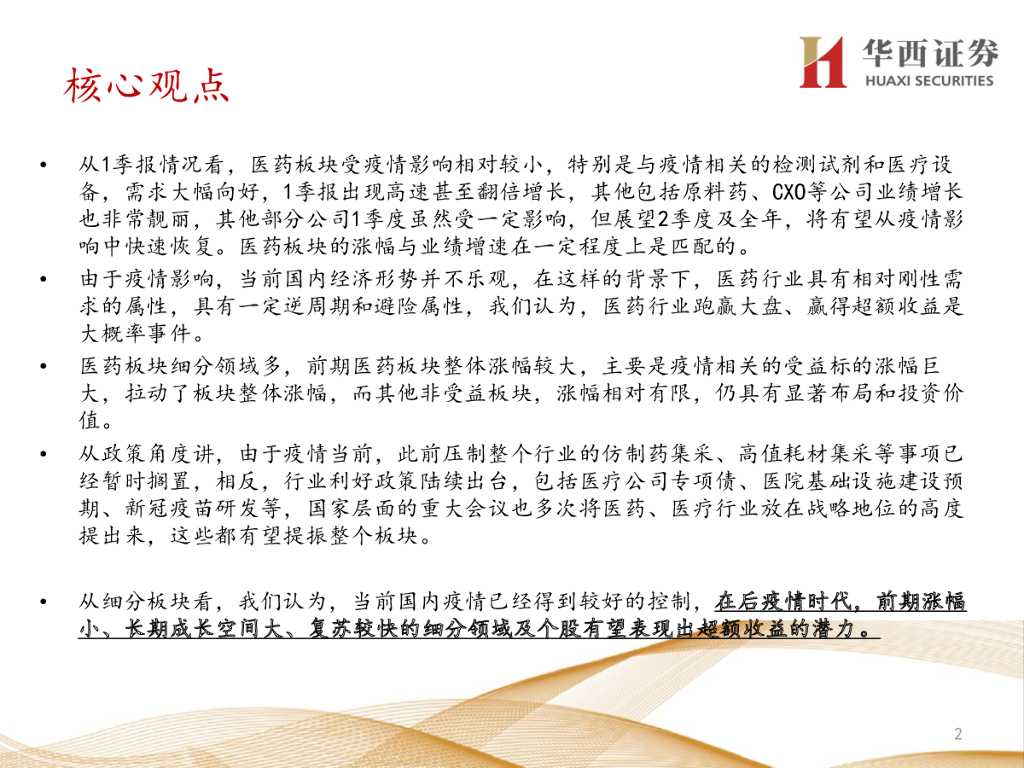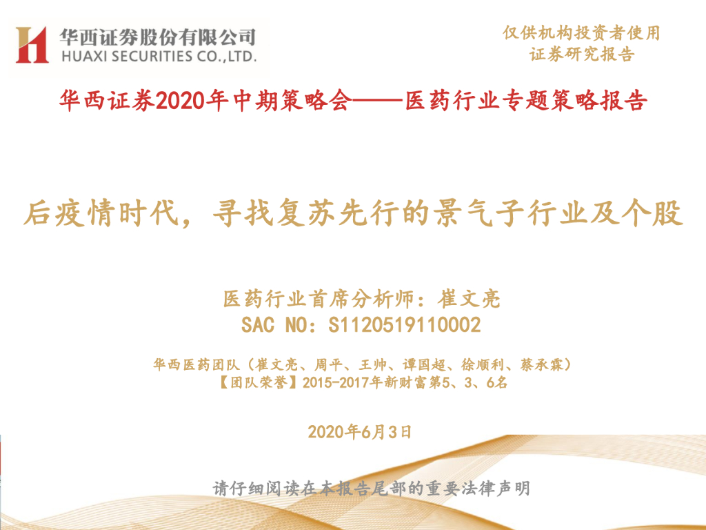 华西证券:医药行业专题策略报告:后疫情时代,寻找复苏先行的景气子行业及个股.pdf