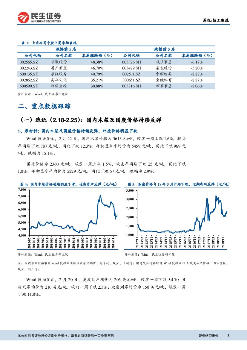 民生证券:轻工制造周报:第4批外废配额不足万吨,国内木浆及国废价格持续反弹.pdf