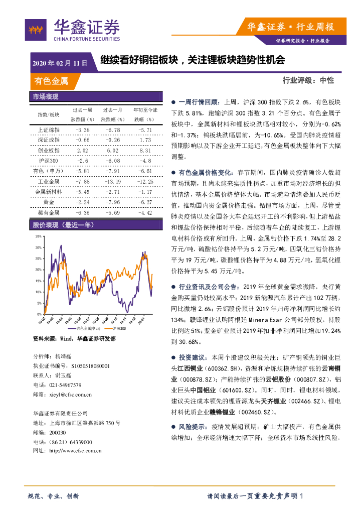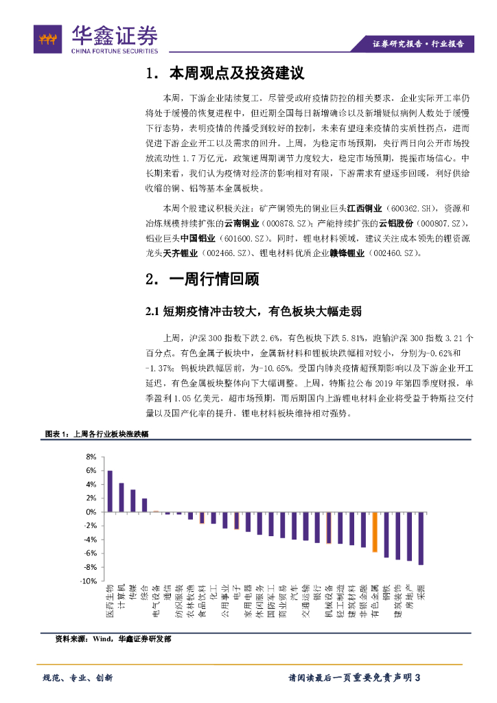 华鑫证券:有色金属行业周报:继续看好铜铝板块,关注锂板块趋势性机会.pdf