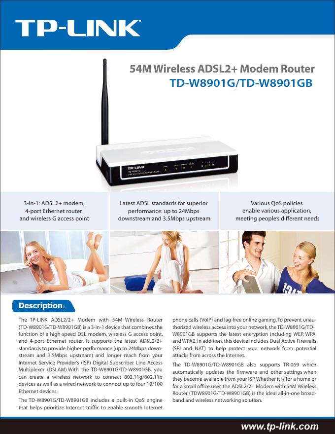 TP-LINK 54M Wireless ADSL2+ Modem Router TD-W8901G/TD-W8901GB User Guide.pdf