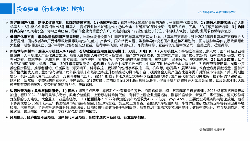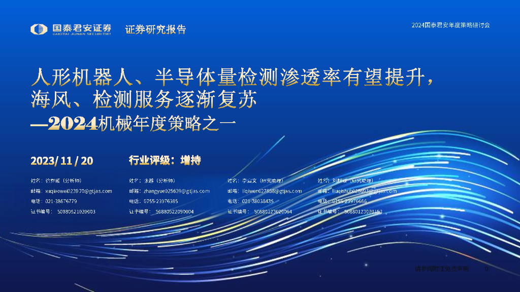 国泰君安证券:2024机械行业年度策略:人形机器人、半导体量检测渗透率有望提升,海风、检测服务逐渐复苏.pdf