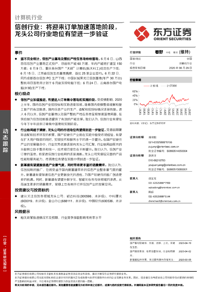 东方证券:计算机行业:信创行业:将迎来订单加速落地阶段,龙头公司行业地位有望进一步验证.pdf