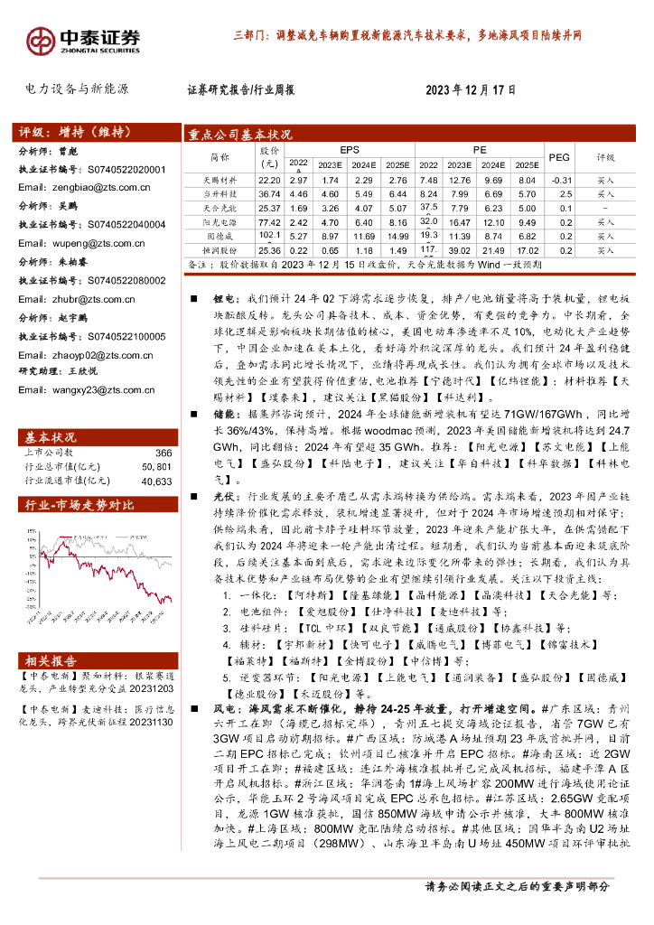 中泰证券:电力设备与新能源行业周报:三部门:调整减免车辆购置税新能源汽车技术要求,多地海风项目陆续并网.pdf