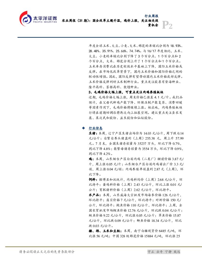 太平洋证券:农业周报:国企改革主题升温,鸡价上涨,关注相关投资机会.pdf