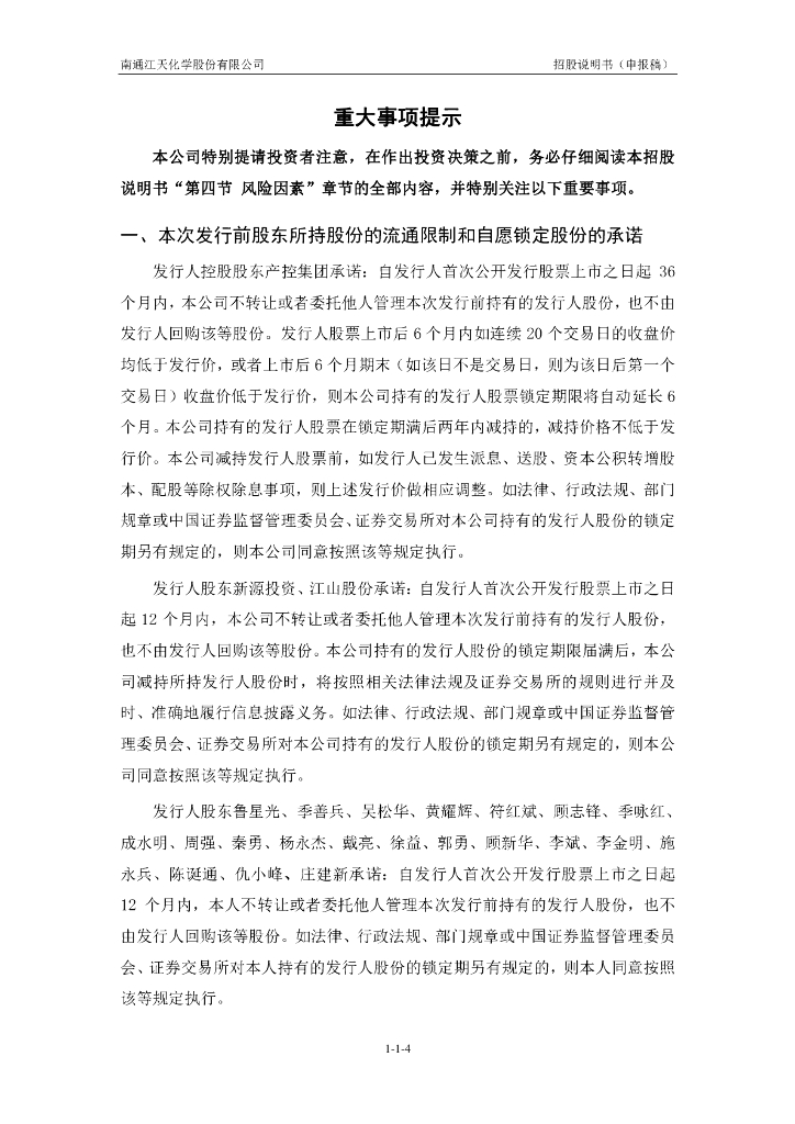 南通江天化学股份有限公司深交所创业板IPO上市招股说明书.pdf