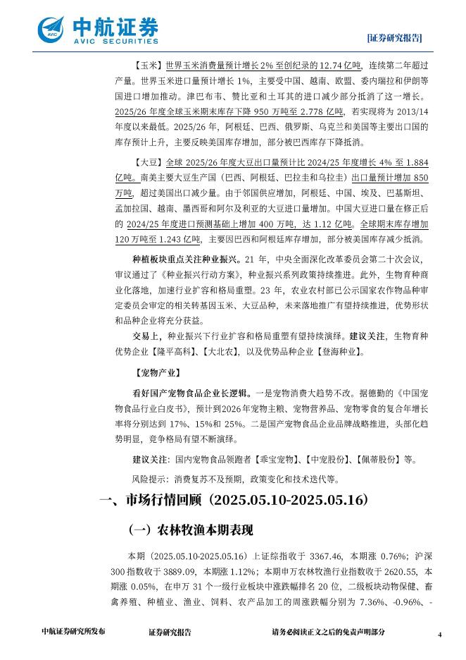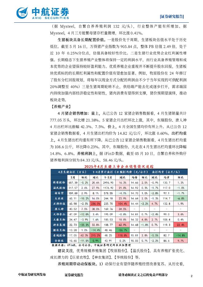 中航证券:农林牧渔周观点:Q1猪企兑现较好业绩,4月三方生猪产能调增.pdf
