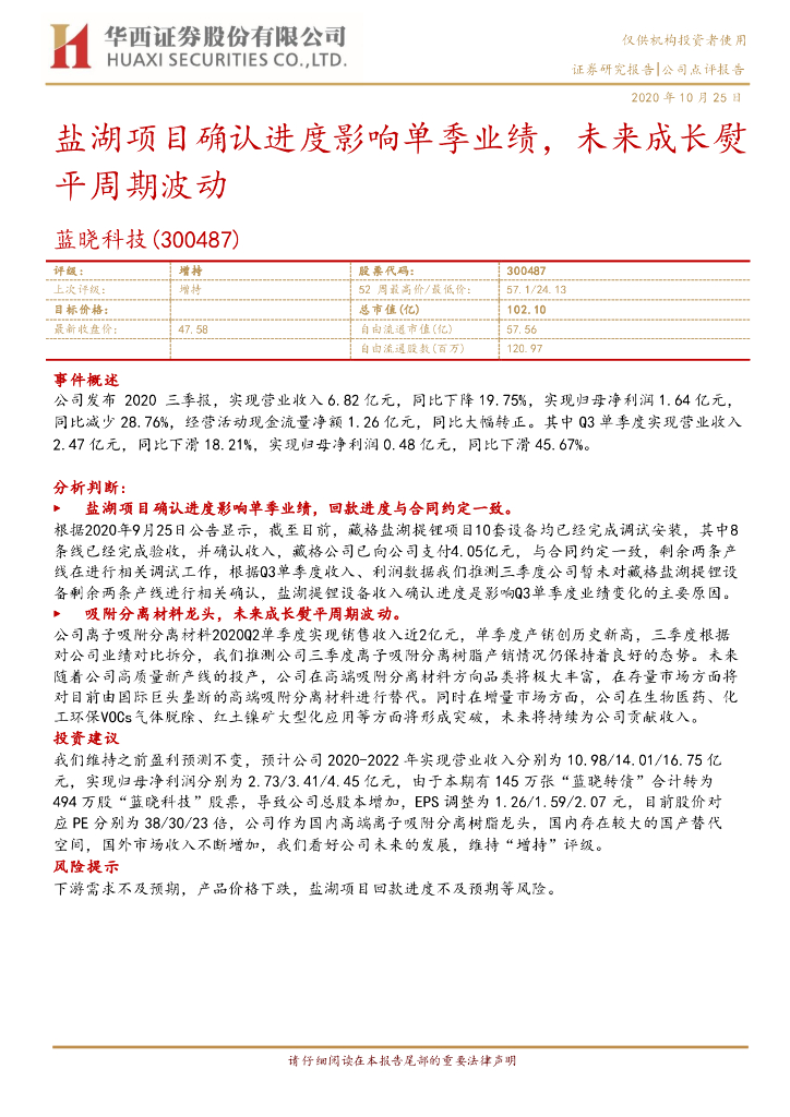 华西证券:蓝晓科技(300487)-盐湖项目确认进度影响单季业绩,未来成长熨平周期波动.pdf