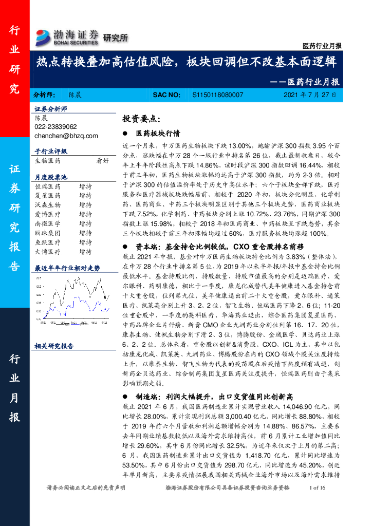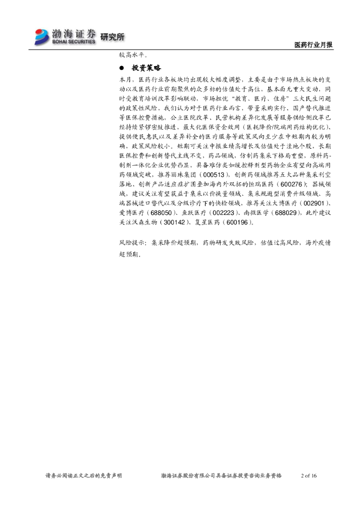 渤海证券:医药行业月报:热点转换叠加高估值风险,板块回调但不改基本面逻辑.pdf