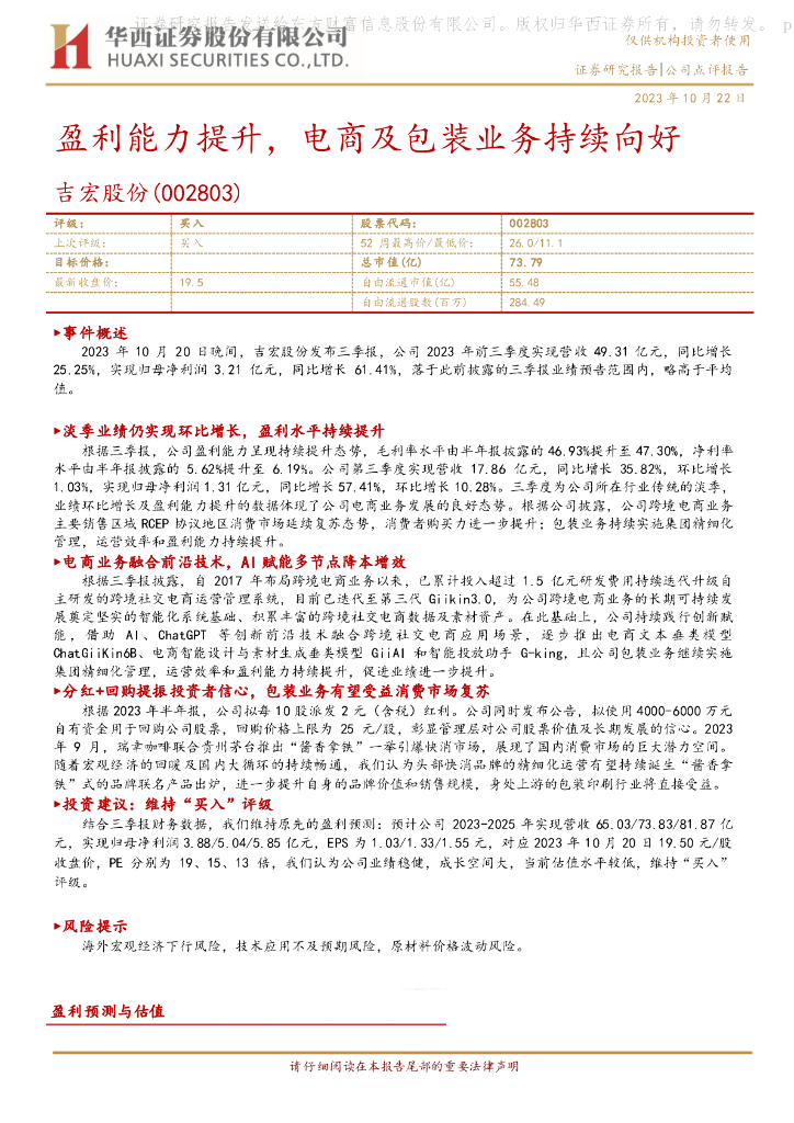 华西证券:吉宏股份(002803)-盈利能力提升,电商及包装业务持续向好.pdf