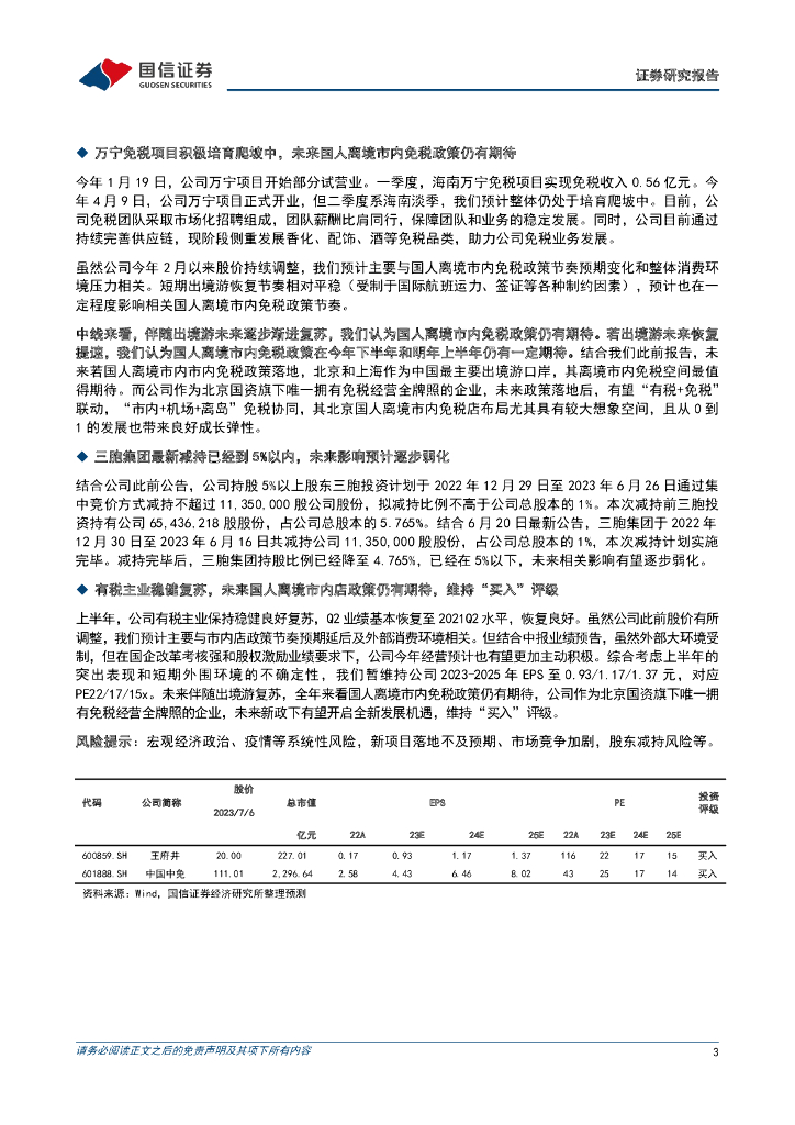 国信证券:王府井(600859)-有税主业上半年复苏良好,离境市内免税店政策仍有期待.pdf