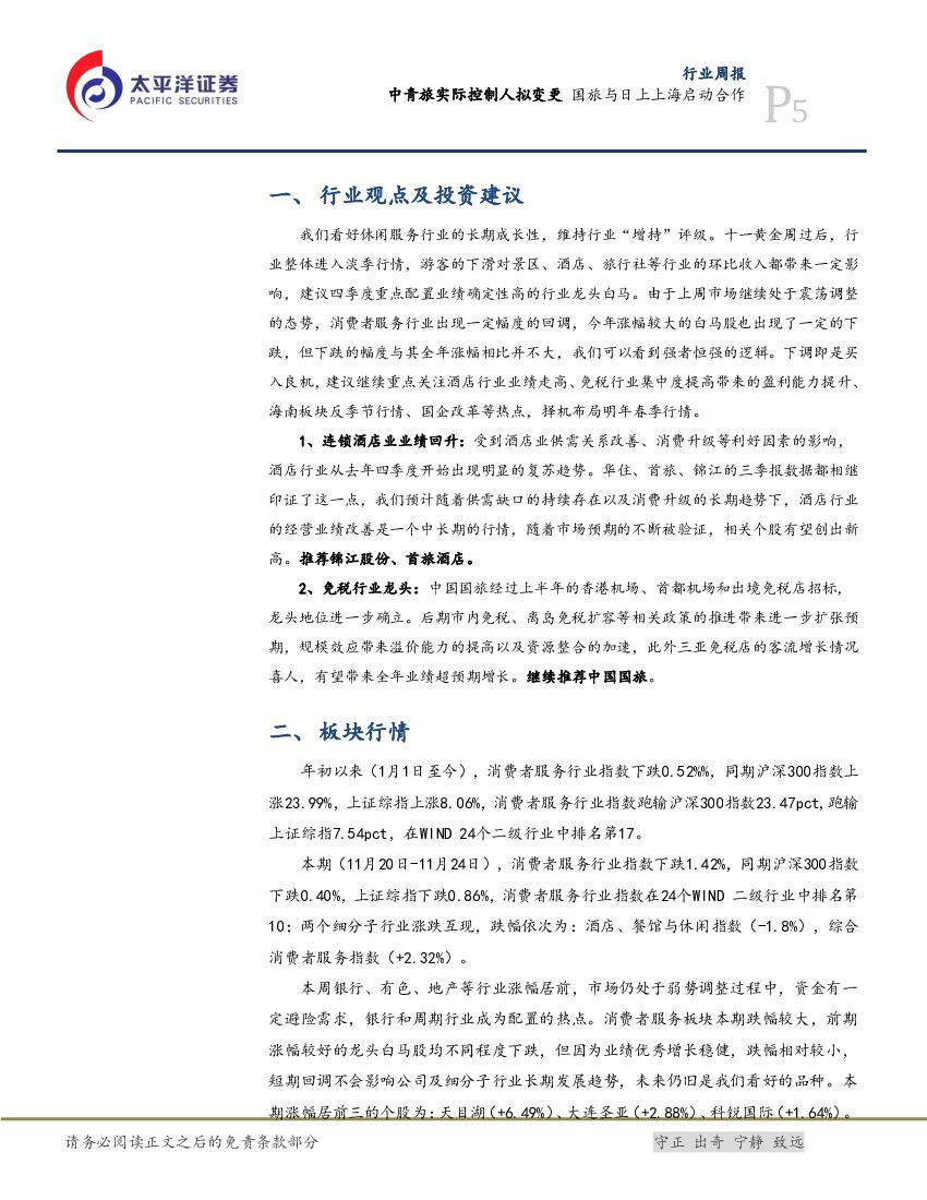 太平洋证券:消费行业周报:中青旅实际控制人拟变更 国旅与日上上海启动合作.pdf