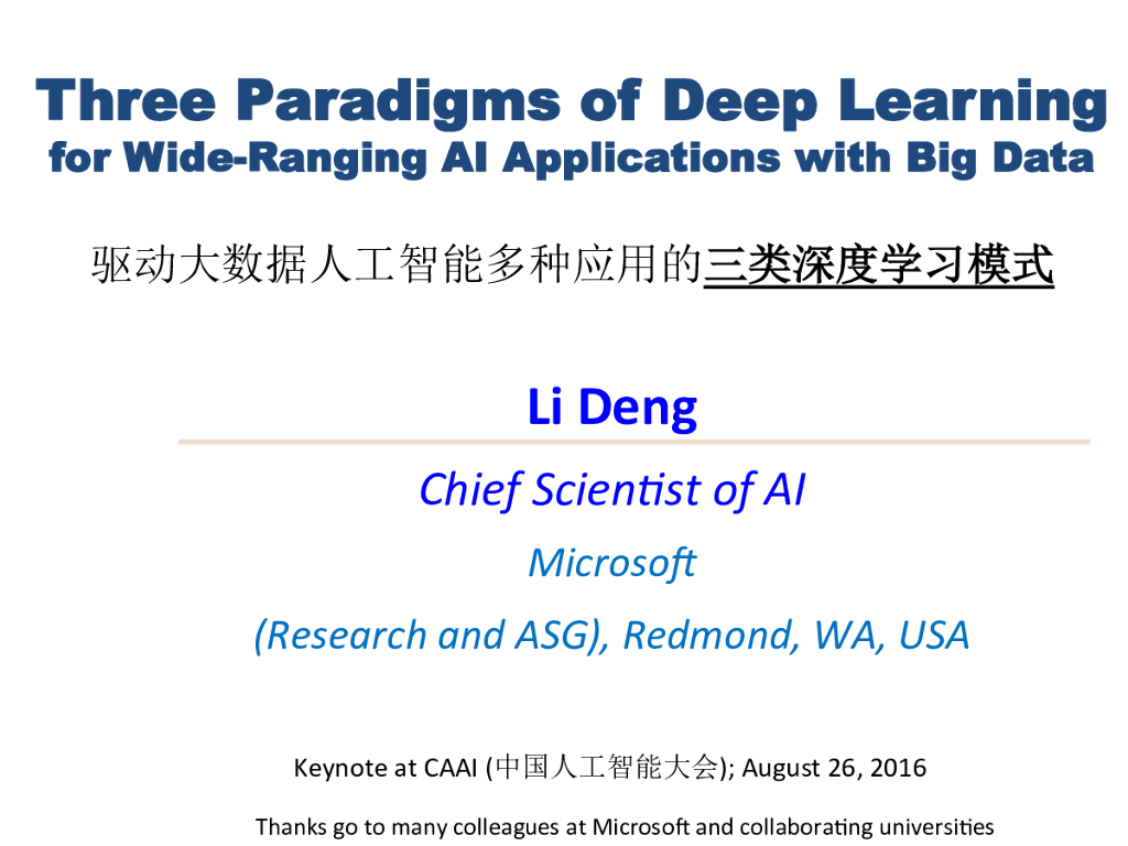 微软:驱动大数据人工智能多种应用的三类深度学习模式.pdf