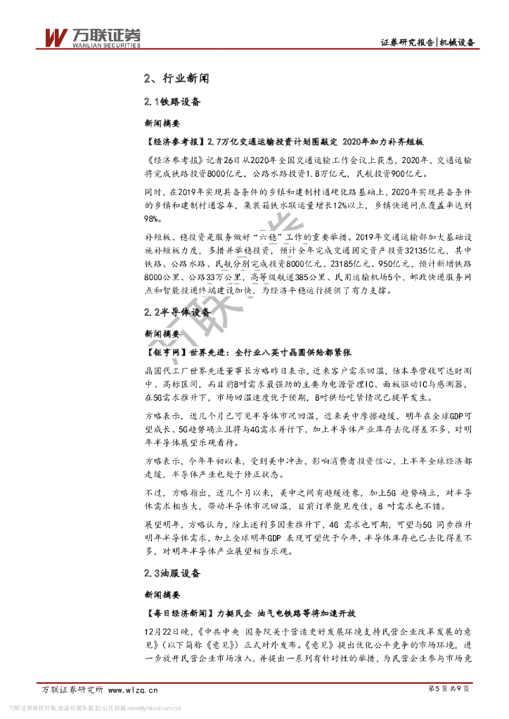万联证券:机械设备行业周观点:机械产品需求有望迎结构性回暖,优质龙头值得关注.pdf