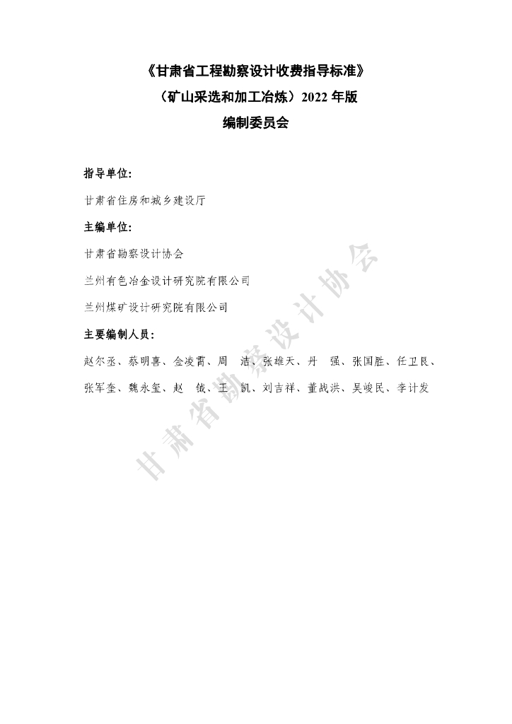 甘肃省工程勘察设计收费指导标准(矿山采选和加工冶炼)(2022年版).pdf
