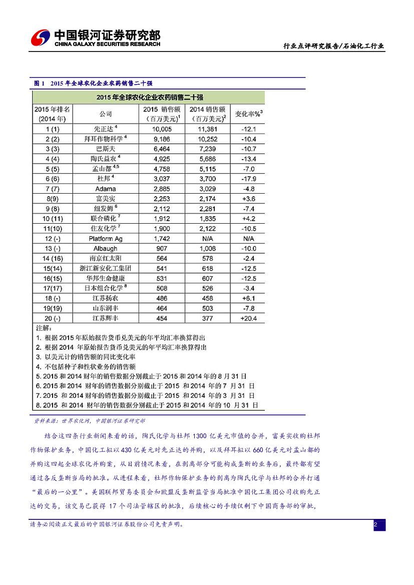 中国银河:石化化工行业:全球农化并购即将收尾,中化国际和沙隆达或最受益.pdf